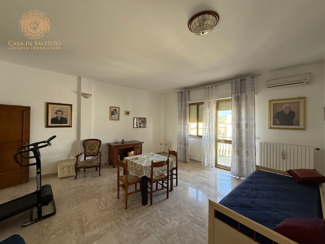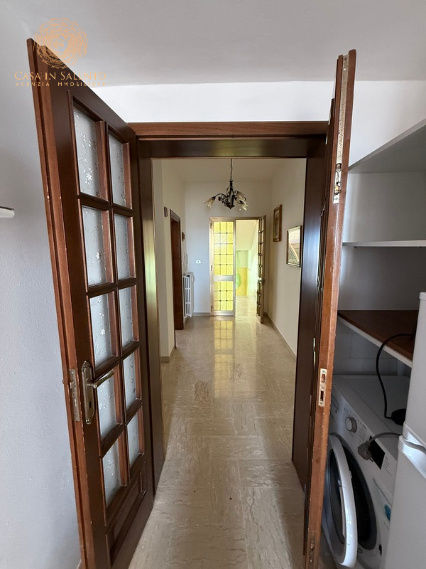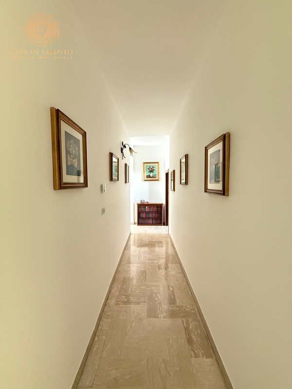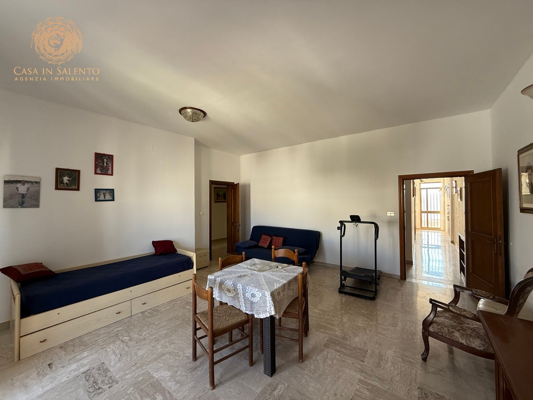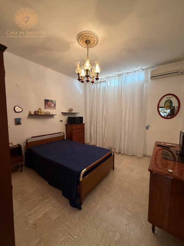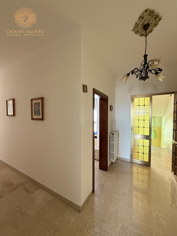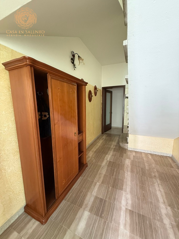 L’immobile è indipendente, perfettamente collocato nel centro di Miggiano, si articola su circa 150 mq interni ed è caratterizzato da 5 vani ben distribuiti, due camere da letto, bagno, angolo cottura, soggiorno, piccola veranda coperta, balcone e disimpegno. Volte piane, climatizzatori, termosifoni alimentati a metano, allaccio alle pubbliche utenze di luce e acqua. Il garage, di circa 40 mq, è accessibile dall’esterno o attraverso una porta comunicante con l’ingresso dell’immobile. C.E.: “E”.