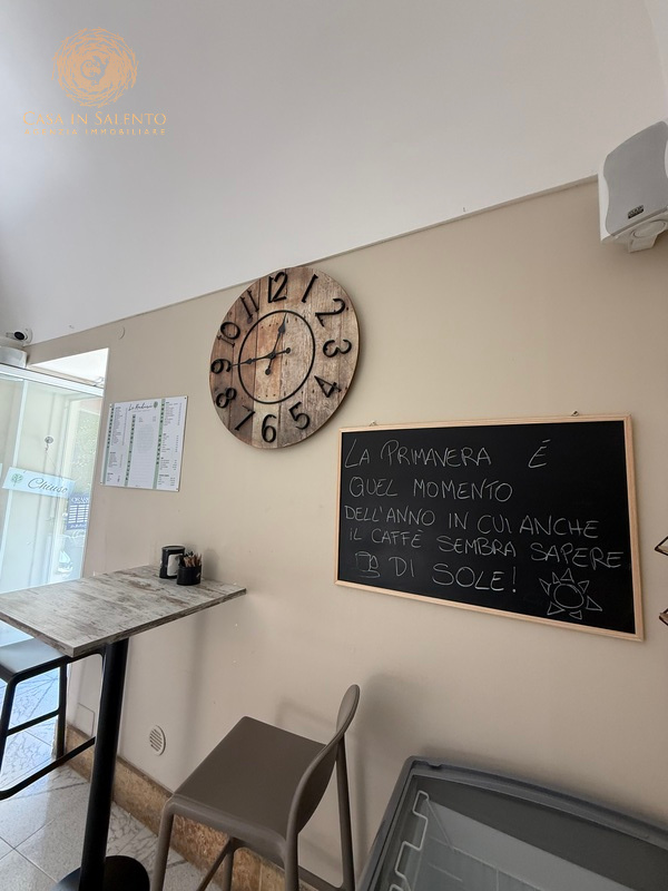 Situato nella vivace piazza centrale di Lucugnano, frazione di Tricase celebre per la sua tradizione artigiana e la vicinanza alle splendide coste del basso Salento, proponiamo in vendita un’attività di bar/caffetteria completa di licenza, arredamento e attrezzature professionali. L’attività opera con un regolare e vantaggioso contratto di affitto delle mura. L’immobile, ristrutturato nel 2019, vanta una superficie di circa 125 mq, distribuiti con intelligenza per massimizzare il flusso dei clienti e il comfort operativo e di un secondo accesso. Caratterizzato dalle tipiche volte a stella salentine e da ampie aperture che garantiscono un’ottima illuminazione naturale e visibilità costante, si affaccia direttamente sulla piazza principale, punto di ritrovo naturale per la comunità locale e tappa frequente per i turisti diretti verso le marine di Tricase o Santa Maria di Leuca.