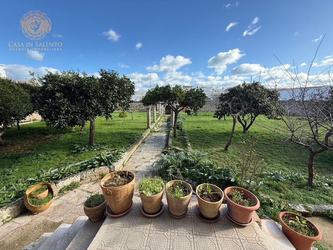 VENDESI a Castrignano del Capo, in pieno centro, palazzo di fine ‘800 con giardino. Castrignano del Capo è situato nell’estremo lembo della penisola salentina, ed il paese conta circa 5000 abitanti e del suo territorio fanno parte anche Santa Maria di Leuca ed i due piccoli borghi di Giuliano di Lecce e Salignano. Il fulcro del paese è la bella piazza di San Michele dove troneggia al centro la statua con S. Michele Arcangelo e dove si affaccia la chiesa madre dedicata al patrono. E’ un posto molto accogliente ed un luogo particolarmente piacevole per consumare un aperitivo visto che ci sono diversi bar con tavoli all’aperto. Tutto intorno bei palazzi antichi e ristrutturati, spesso trasformati in confortevoli B&B, botteghe artigiane, parrucchieri, agenzie e altre attività commerciali. A completare la proprietà, una cantina con intercapedine e depositi. Lastricato solare di proprietà esclusiva con accesso diretto dall’interno del palazzo.