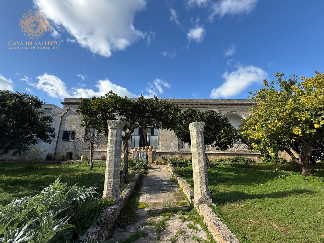 La proprietà si sviluppa su un unico livello. Da uno spazio antistante il palazzo ed una scalinata si accede alla loggia, con doppio ingresso sul soggiorno o sulla zona pranzo; sul lato sinistro si accede allo studio, al salotto, alle tre camere da letto di cui una con bagno en-suite, ripostiglio, disimpegno e cabina armadio, ulteriore bagno con ripostiglio e disimpegno e sul lato destro si accede alla cucina e alla dispensa. Tutte le stanze si affacciano sul meraviglioso giardino, passando dal portico. Lo stile sobrio e i colori tenui donano agli ambienti un aspetto accogliente e rilassante. L’ampia zona verde che circonda la dimora è di circa 1.500 mq in stile mediterraneo con ulivi e alberi ornamentali, piante aromatiche e piccolo deposito attrezzi. C.E.: “F”.