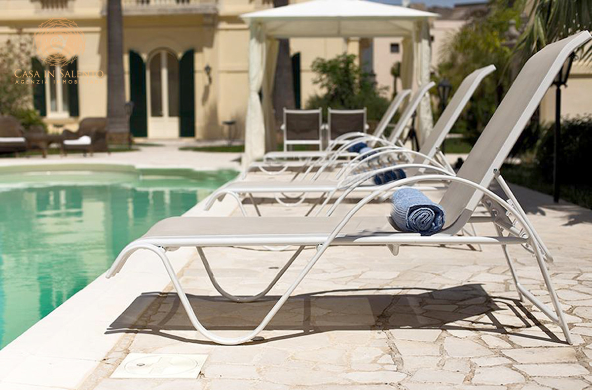 All’esterno si apre un magnifico giardino storico di circa 1.800 mq, impreziosito da un incantevole agrumeto e da una piscina attrezzata, che creano un’oasi di tranquillità e bellezza al suo interno.