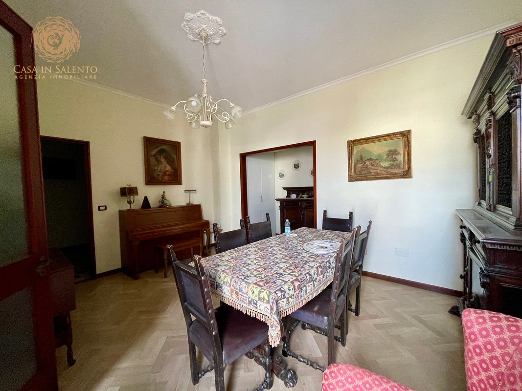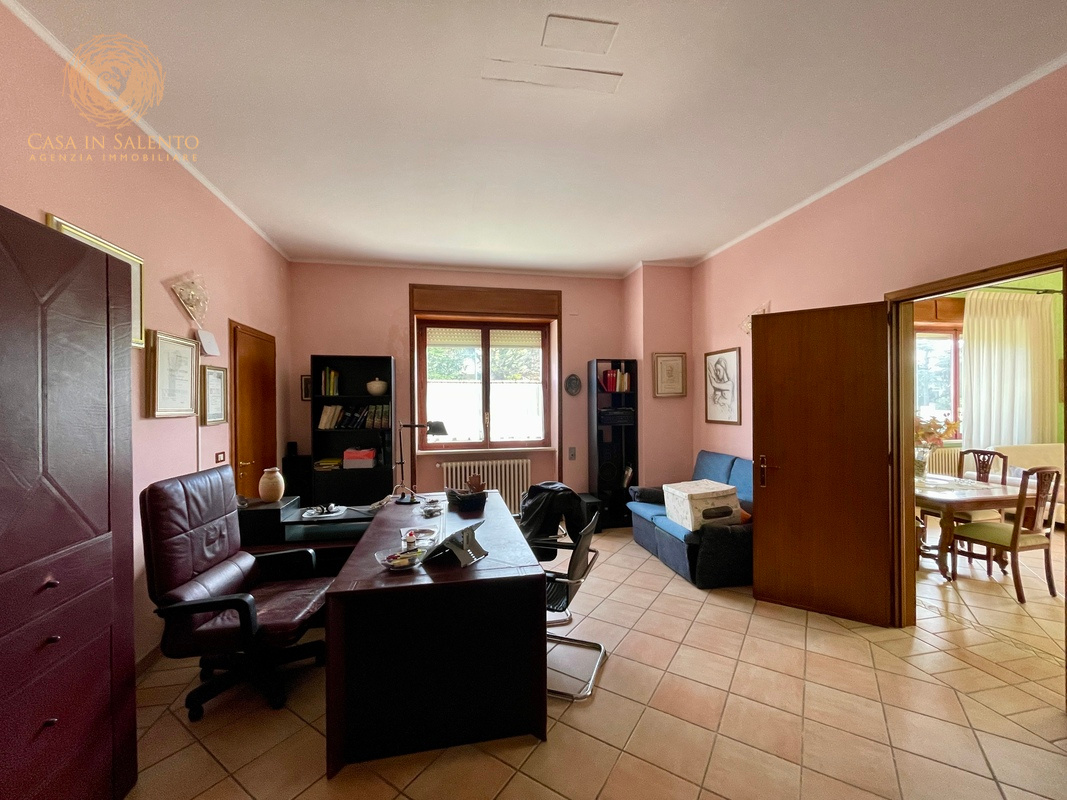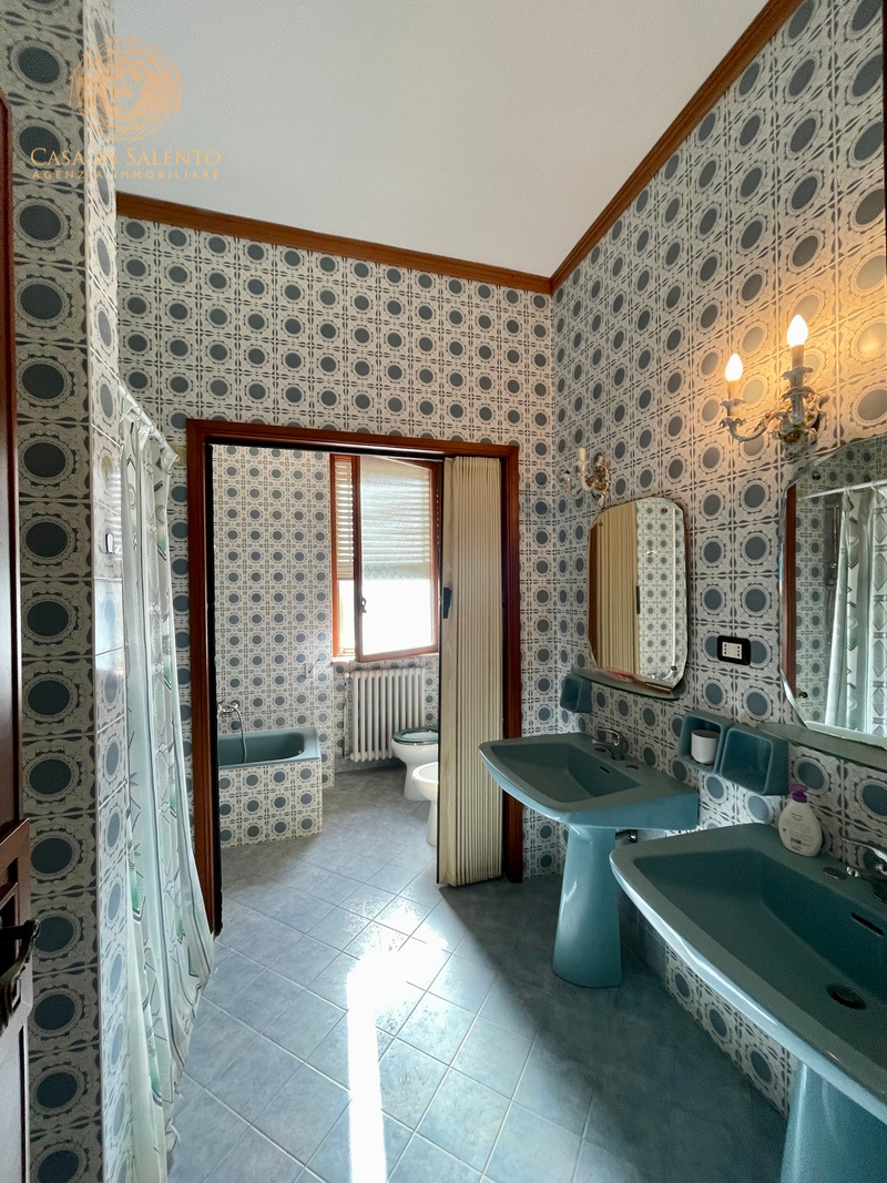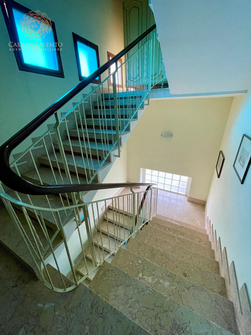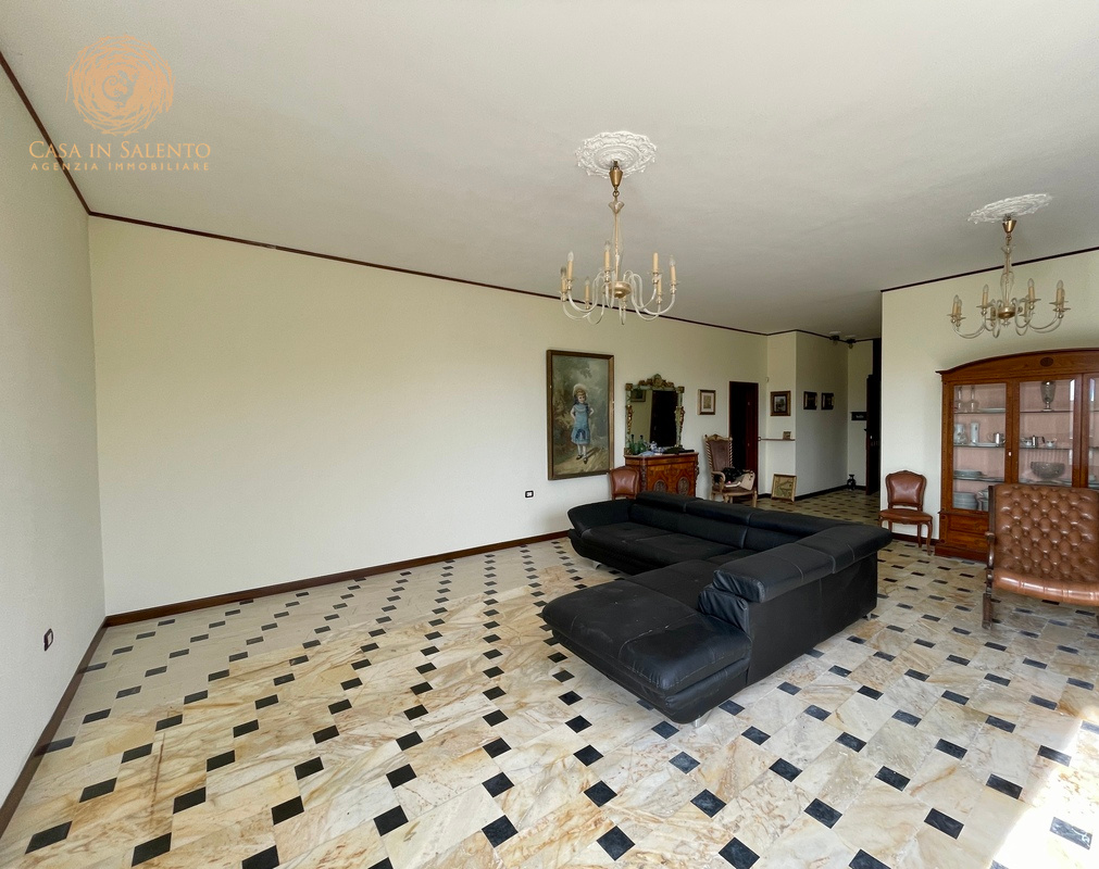 In pieno centro a Gagliano del Capo, proponiamo in vendita un’elegante soluzione indipendente disposta su tre livelli, caratterizzata da ambienti ampi, luminosi e da una parziale ristrutturazione effettuata nel 2016. La proprietà vanta un esteso giardino, in parte edificabile, di circa 800 mq, ideale per momenti di relax e attività all’aperto, oltre a un comodo garage di circa 90 mq con tettoia e deposito. Il piano terra di circa 230 mq, è composto da un ingresso che si apre direttamente in un ambiente luminoso che introduce alla zona giorno, composta da un ampio soggiorno con grandi vetrate, che garantiscono eccellente illuminazione naturale, prosegue per una comoda sala pranzo con angolo cottura e bagno. La zona notte comprende tre camere da letto, uno studio, un bagno, oltre a disimpegno e ripostiglio, ben distribuiti e funzionali. Il primo piano, di circa 205 mq, è raggiungibile sia tramite una scala interna che tramite una scala esterna, ed accoglie un grande living, una sala da pranzo e un cucinotto. Anche questo livello offre tre camere da letto, uno studio, una lavanderia, due bagni, disimpegno e una terrazza a livello, perfetta per essere vissuta durante la bella stagione. Alla cantina, di circa 20 mq, si accede da una comoda scala esterna.