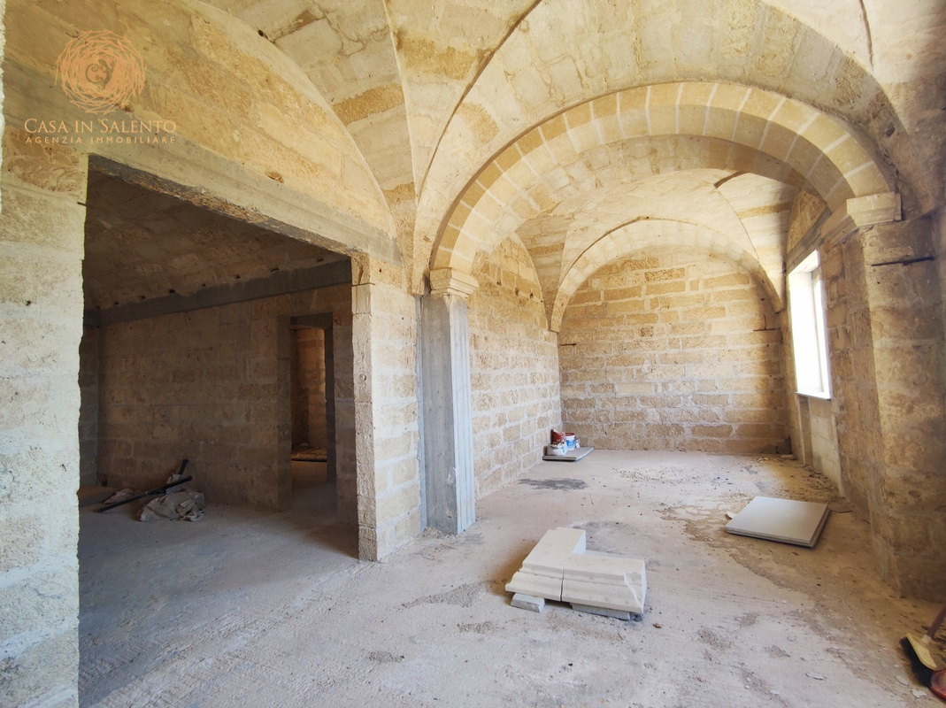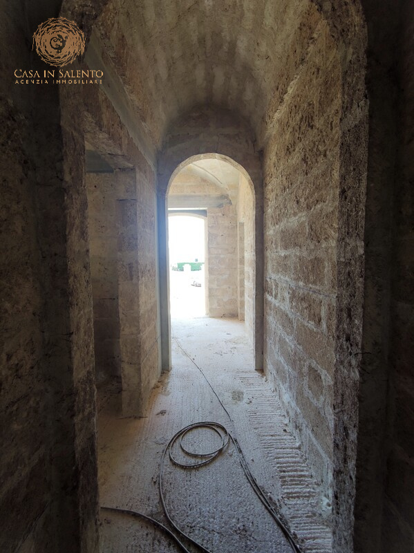 VENDESI a Montesano Salentino (LE), in zona periferica ma vicino a tutte le comodità , villa indipendente allo stato rustico suddivisa in 2 livelli di circa 560 mq. compreso di porticato esterno. Terreno agricolo di pertinenza di circa 3500 mq. La villa si presenta intonacata e pitturata esternamente, è caratterizzata da splendide volte a faccia vista a maltrotta, a squadro, a spigolo e a botte per il piano sottoposto, con rivestimenti in pietra leccese all’esterno, nessun impianto è stato predisposto ed entrambi i piani sono accessibili da scala interna coperta. La struttura si presta benissimo ad essere utilizzata sia come soluzione abitativa che come struttura ricettiva, grazie agli ampi spazi interni ed esterni. Pozzo artesiano e fossa biologica imhoff. Montesano Salentino è un comune italiano di 2.615 abitanti della provincia di Lecce in Puglia. Situato nel basso Salento, a 47 km da Lecce è attraversato dalla statale che collega Santa Maria di Leuca. Dal 2016 fa parte dell’associazione Borghi Autentici d’Italia. C.E.: immobile esente. PREZZO RIBASSATO DA 285.000 € A 259.000 €